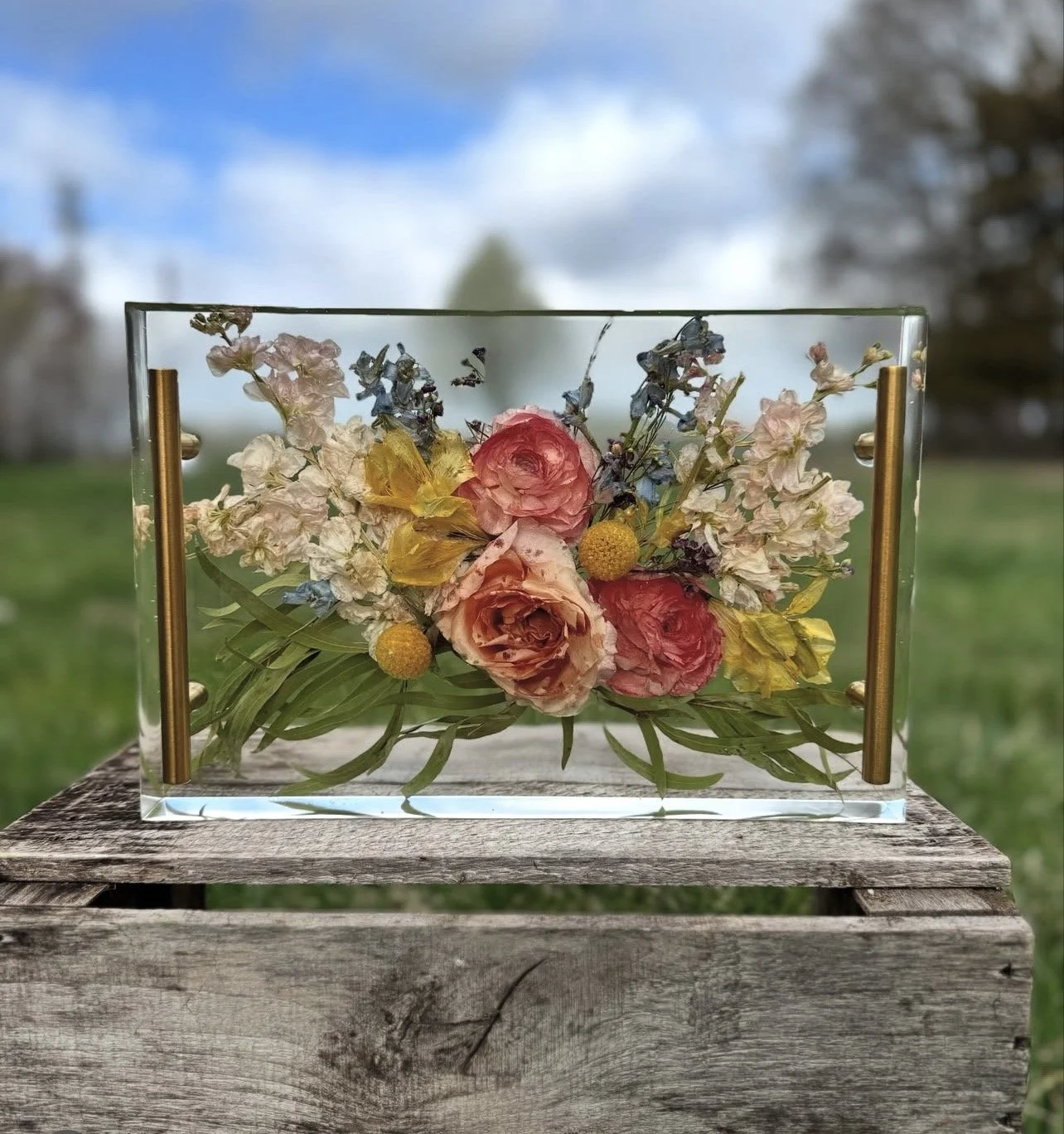 Why settle for anything less, our trays are an absolute center piece for a living room or common area that will always catch the eyes of your guests. This is where Candyce shines with her flower arranging styles that show the beauty of your wedding bouquet for decades to come.